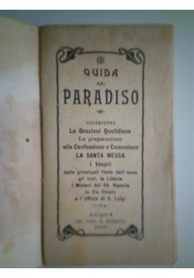 Formato in 18° stretto; 123 pagine. Legatura editoriale cartonata figurata. Con illustrazioni in nero. Manualetto della Compagnia di S. Luigi.