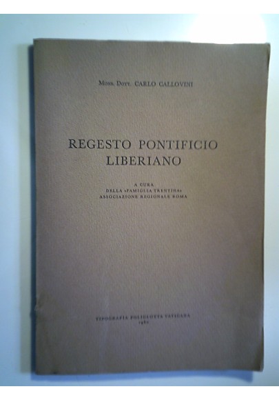 REGESTO PONTIFICIO LIBERIANO A CURA DELLA "FAMIGLIA TRENTINA" ASSOCIAZIONE REGIONALE ROMA