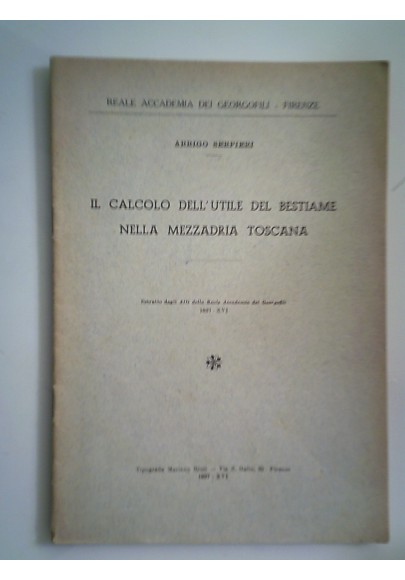 Formato in 16°; 22 pagine. Brossura editoriale spillata. Estratto dagli Atti della Reale Accademia dei Georgofili 1937 - XVI.